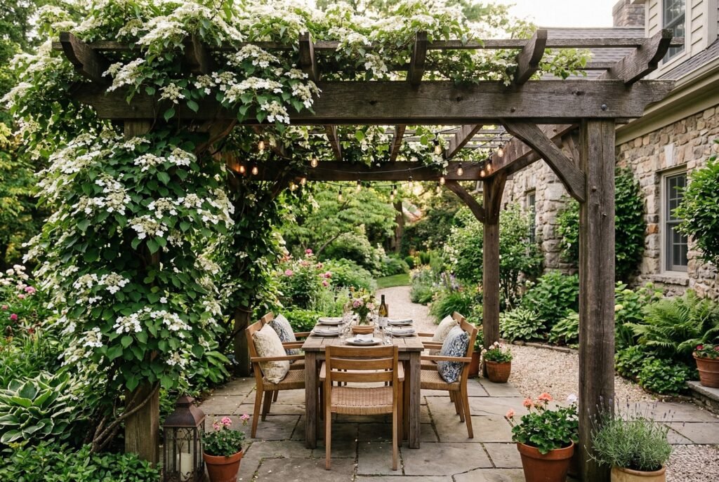 Idea 6: Romantic Climbing Hydrangea on a Pergola