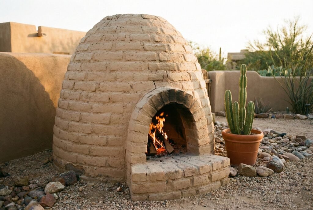 Kiva fireplaces are compact and radiate heat very well due to their shape. They fit perfectly in desert landscapes or xeriscaped yards. They have a soft, organic silhouette that lacks sharp corners, making them feel gentle and welcoming.