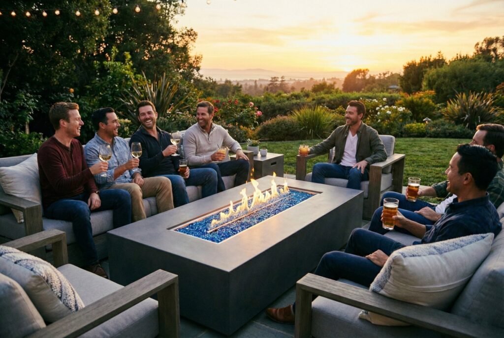 This is the most social option. Instead of facing a wall, guests sit in a circle facing each other with the fire in the middle. It is perfect for conversation and drinks. Because there is no chimney, it preserves 360-degree views of your yard.