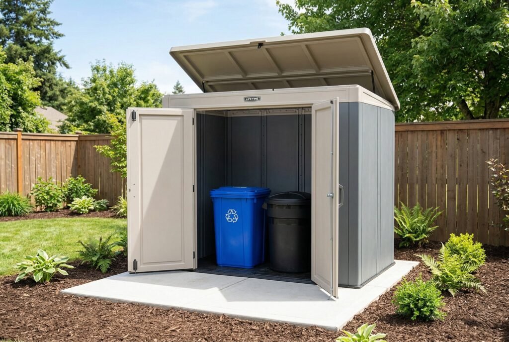 Let’s be honest: your outdoor trash cans and recycling bins are necessary, but they are almost always eyesores. Those bulky, bright green or blue plastic containers have a way of dominating your yard, ruining your home’s curb appeal, and sometimes attracting unwanted local wildlife. It’s frustrating when you invest time and money into landscaping only to have the view spoiled by the utilitarian sight of waste bins.