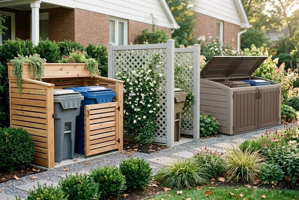 This guide provides more than 15 practical, straightforward, and easy-to-implement ideas for outdoor garbage storage. We have included solutions ranging from quick weekend DIY projects to simple ready-to-use products you can buy and set up in minutes. These ideas are designed to instantly improve the look of your outdoor space while keeping your home organized.