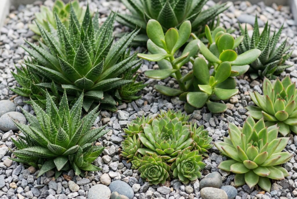 A succulent rock garden combines drought-tolerant plants with various stones, gravel, and boulders. This approach to landscaping is not only practical but also visually striking. The contrast between the soft shapes of the succulents and the hard textures of the rocks creates an interesting landscape.