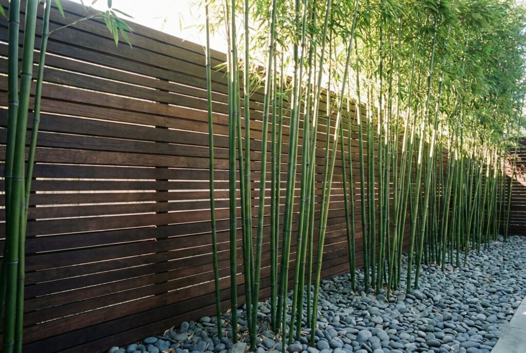 Bamboo creates an instant screen. It is tall, makes a lovely rustling sound in the wind, and looks very modern.
