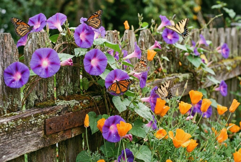 Turn your fence line into a highway for butterflies. This usually involves native plants that offer nectar.