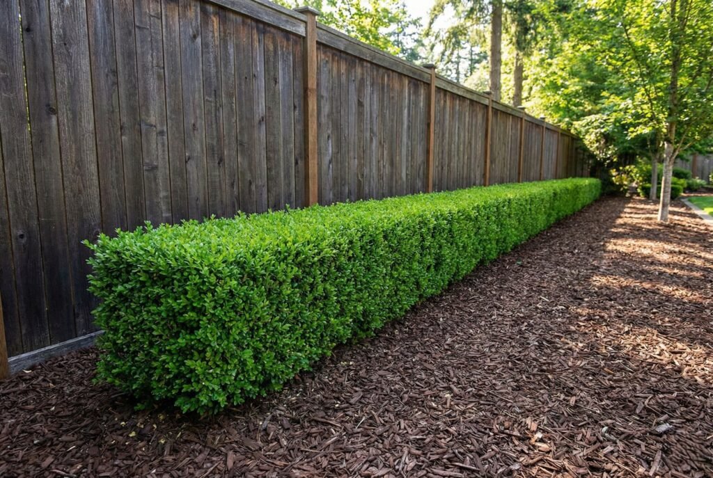 Maintenance Tip: This requires regular shearing to keep the “box” shape. Ensure you leave about 12 inches between the shrub and the fence for airflow and trimming access.
