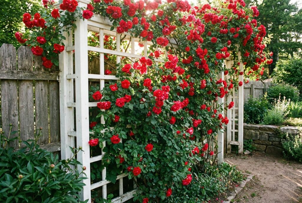 Note: These vines are heavy. They need a sturdy fence (like brick or heavy timber) rather than flimsy lattice.
