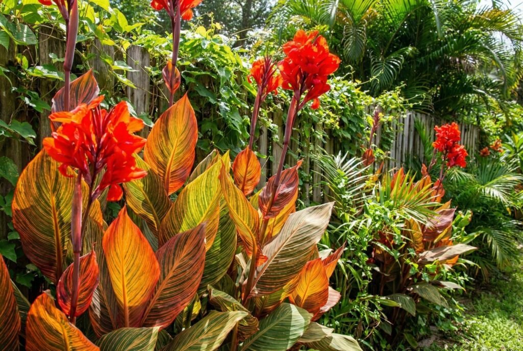 - Canna ‘Tropicanna’ (Striped leaves)